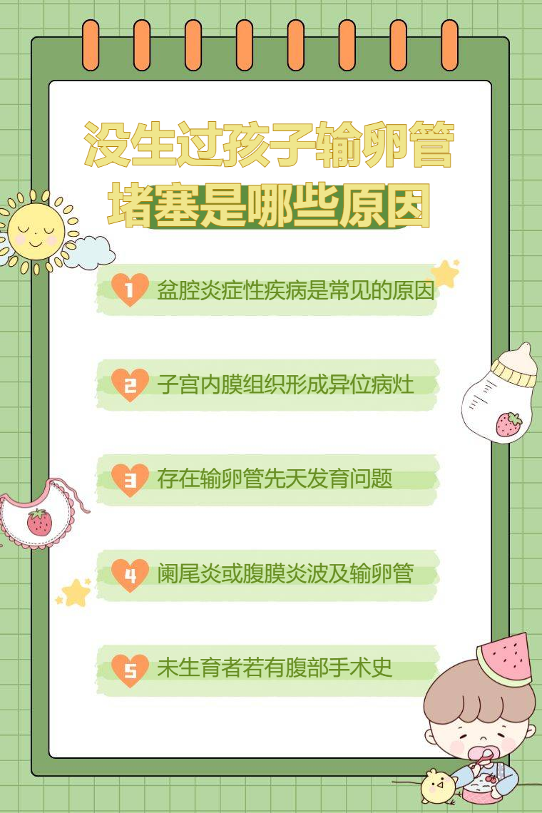 没生过孩子输卵管堵塞的常见原因包括盆腔炎症性疾病、子宫内膜异位症、输卵管先天发育异常、阑尾炎或腹膜炎波及、既往腹部手术粘连等。