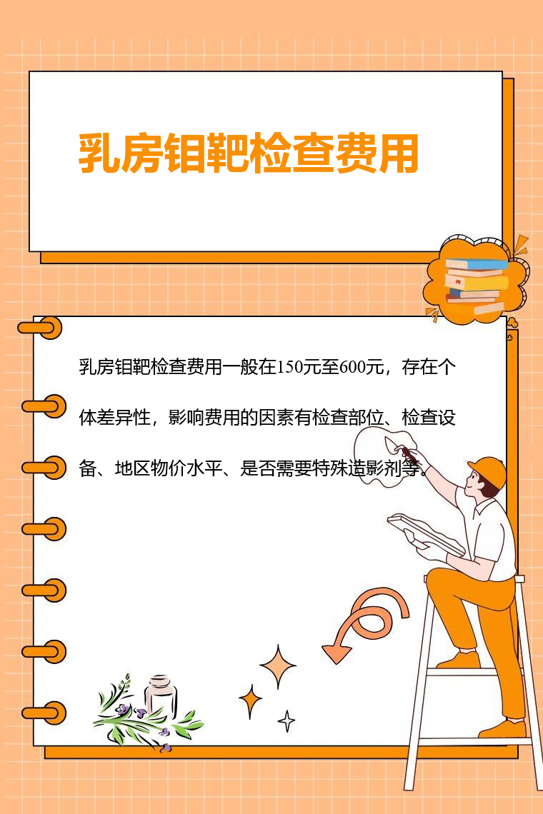 乳房钼靶检查费用一般在150元至600元,存在个体差异性,影响费用的因素有检查部位、检查设备、地区物价水平、是否需要特殊造影剂等。