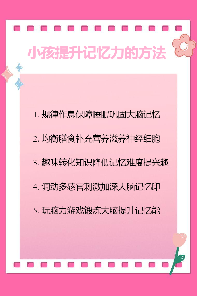 小孩提升记忆力可通过规律作息、均衡膳食、趣味记忆训练、多感官联动练习、针对性脑力游戏等方法实现。