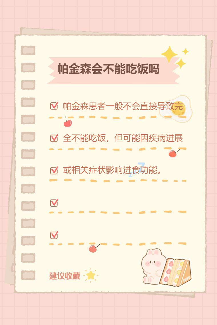 帕金森患者一般不会直接导致完全不能吃饭,但可能因疾病进展或相关症状影响进食功能。