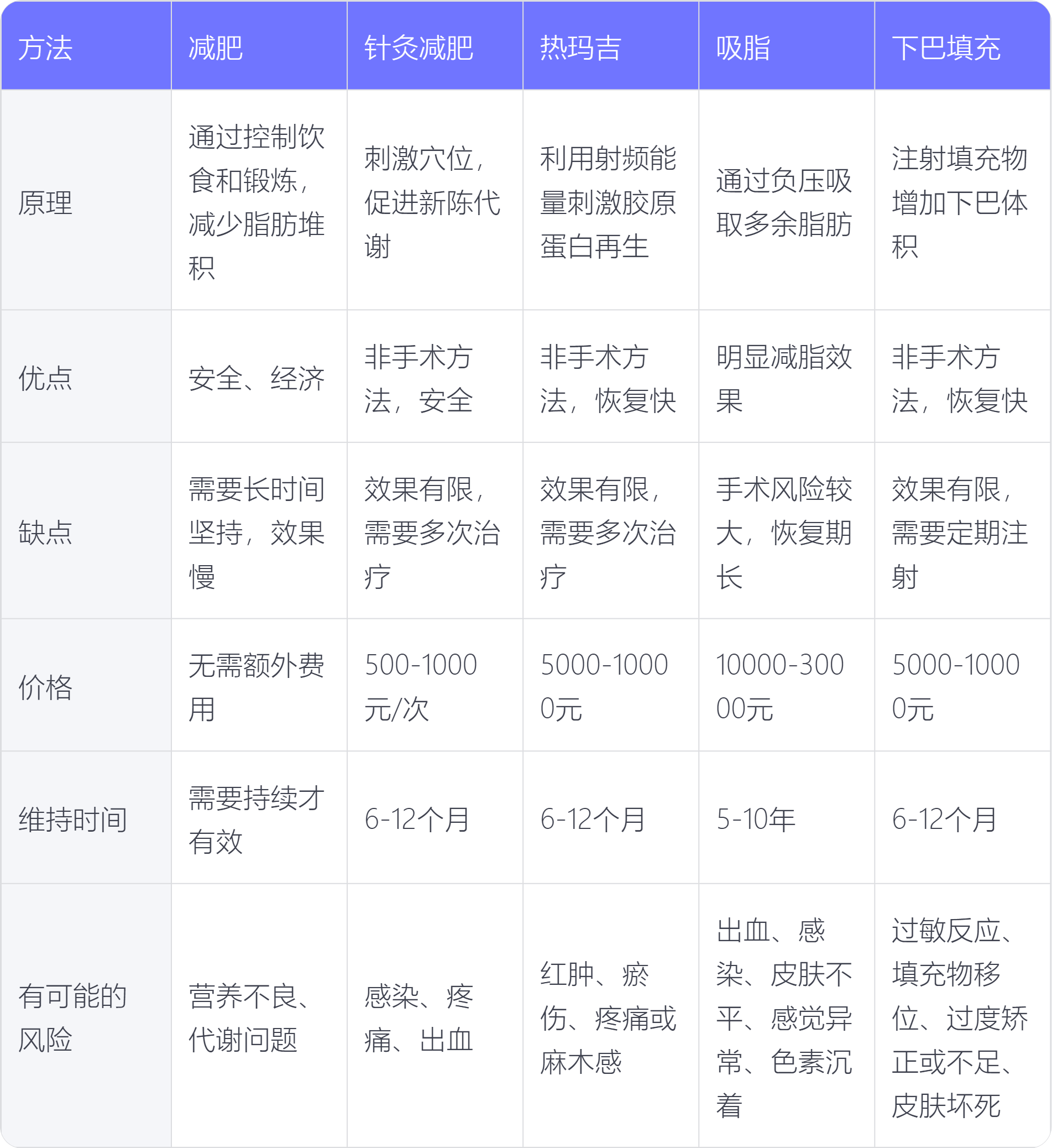 双下巴通常是因为脂肪堆积在下巴下方造成的,可以通过减肥、针灸减肥、热玛吉、吸脂、下巴填充等方法进行改善。