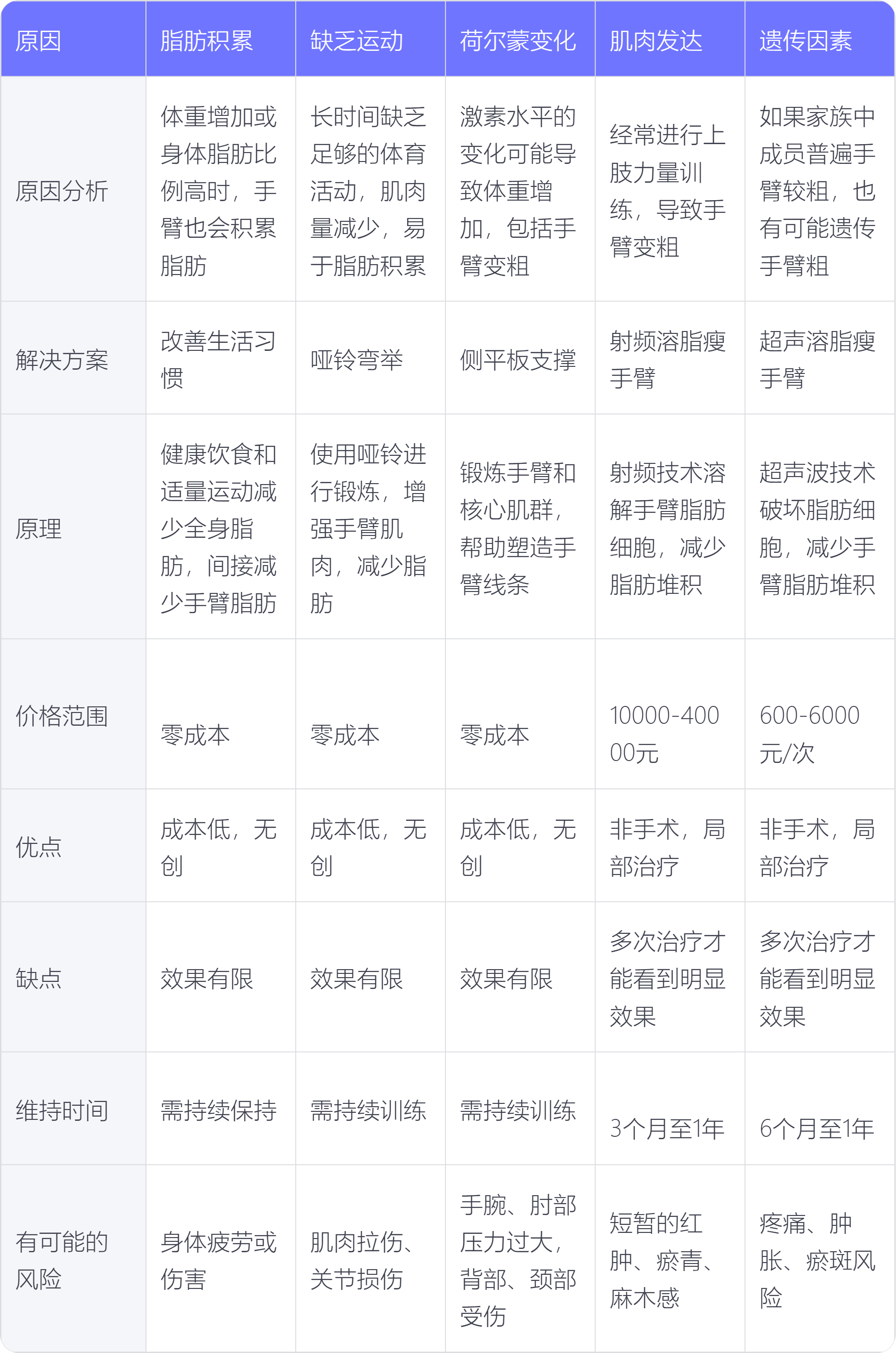 可以通过改善生活习惯、哑铃弯举、侧平板支撑、射频溶脂瘦手臂、超声溶脂瘦手臂等瘦手臂,不同人群可能效果有所不同。