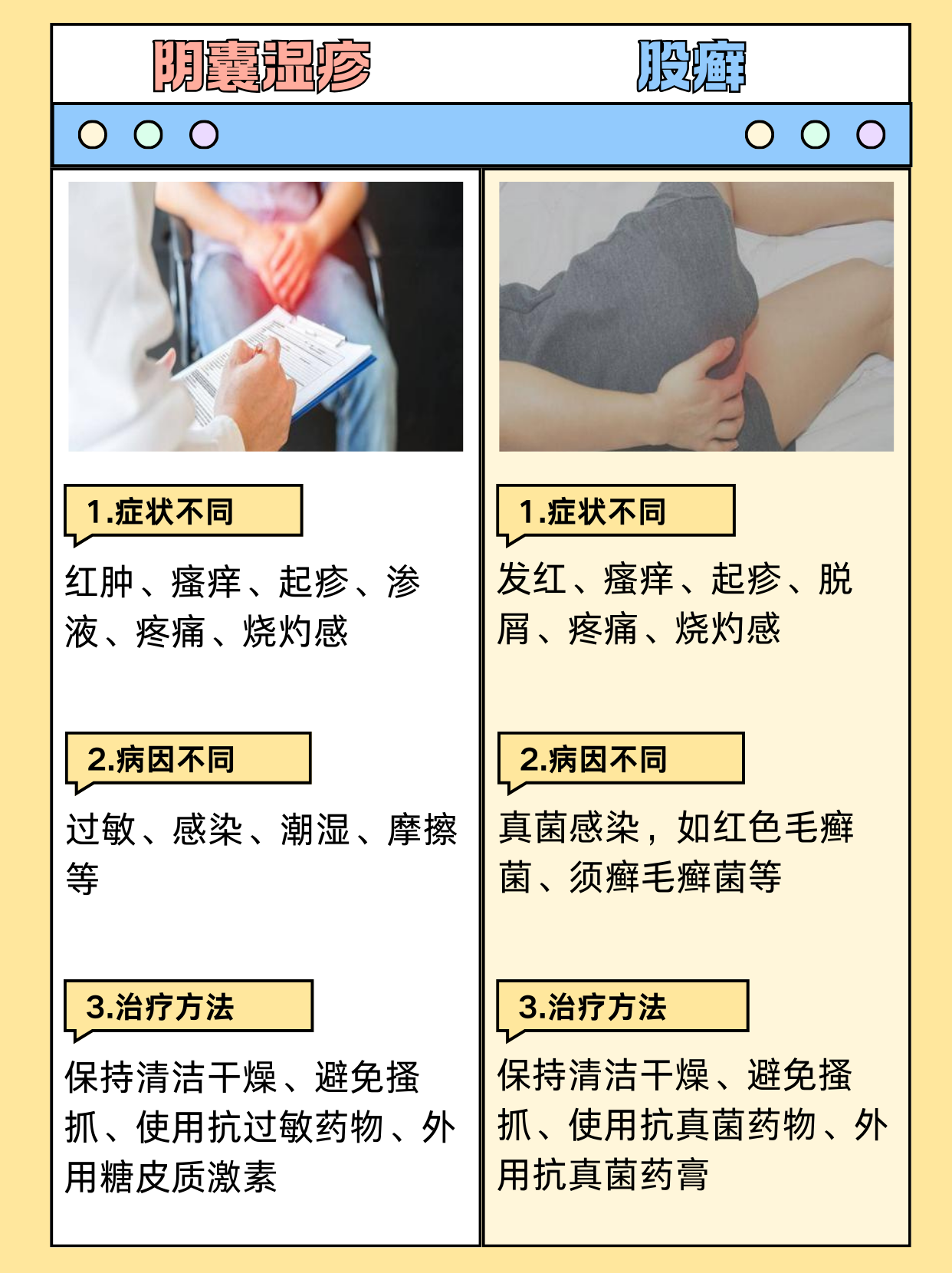 阴囊湿疹和股癣是两种不同的皮肤病,它们的症状、病因和治疗方法都有所不同。
