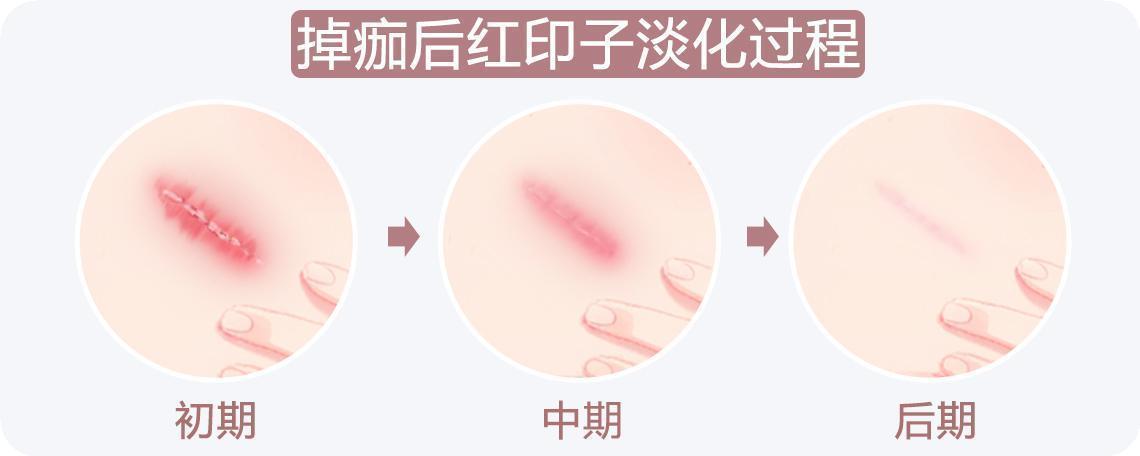 通常掉痂后红印子淡化过程有初期、中期、后期三个过程。