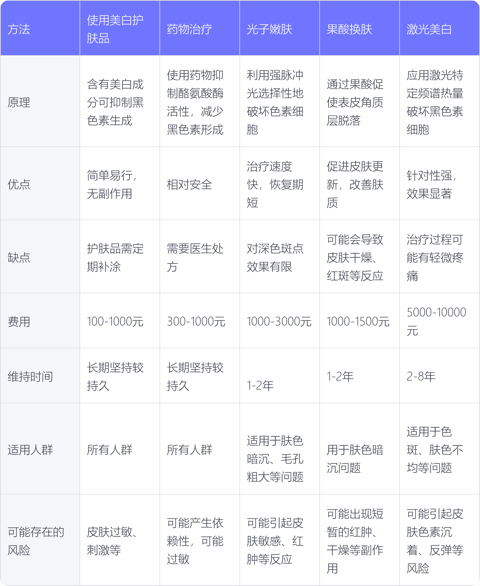通常而言,使用美白护肤品、药物治疗、光子嫩肤、果酸换肤、激光美白等可以变白,如有需求建议就医咨询,遵医嘱合理选择。