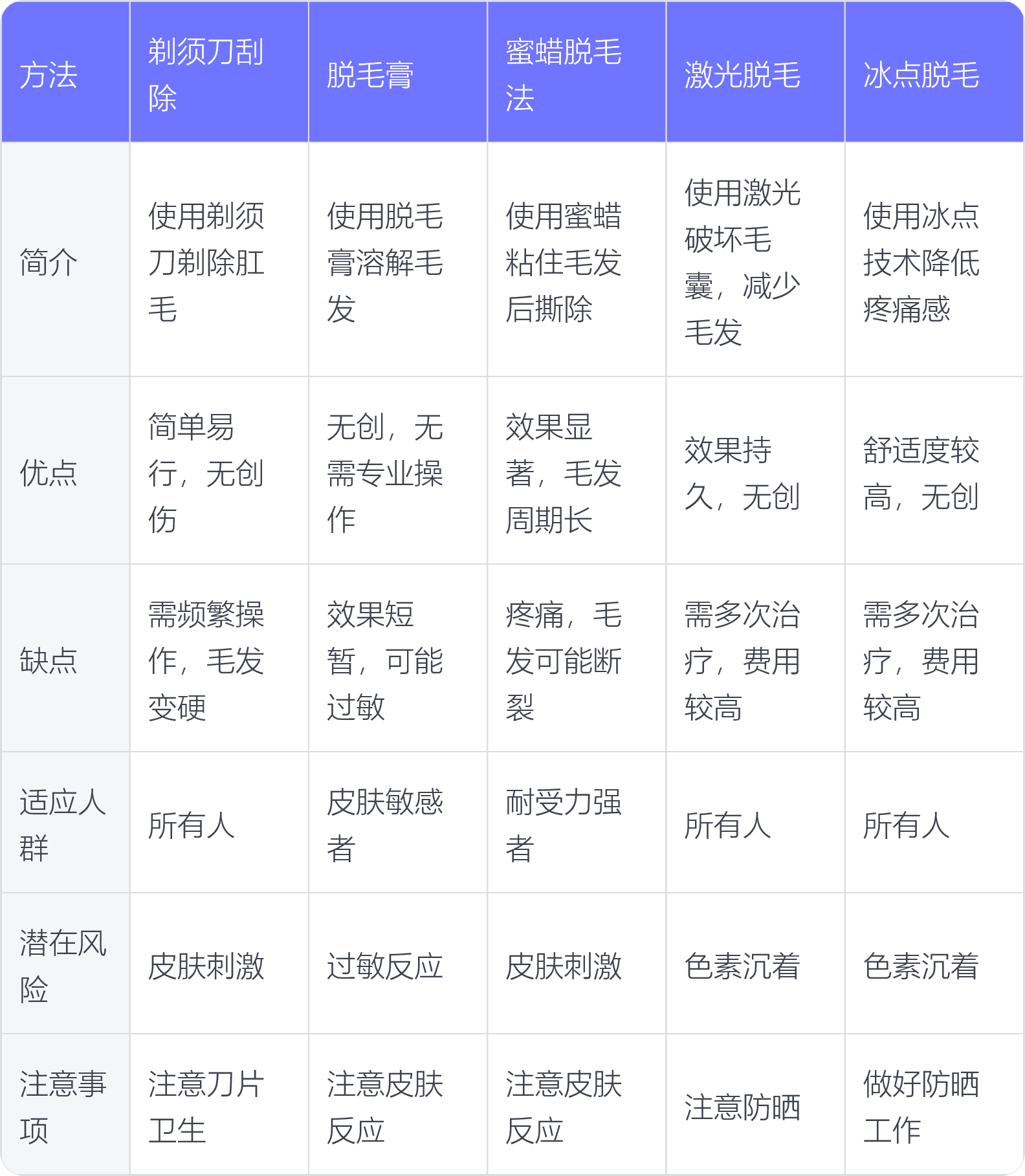 肛毛去除有多种医美方法可供选择。在选择时,应根据个人肤质、毛发状况及需求综合考虑,并在专业人员的指导下进行操作。同时,保持肛周清洁与卫生也是预防毛发问题的重要措施。