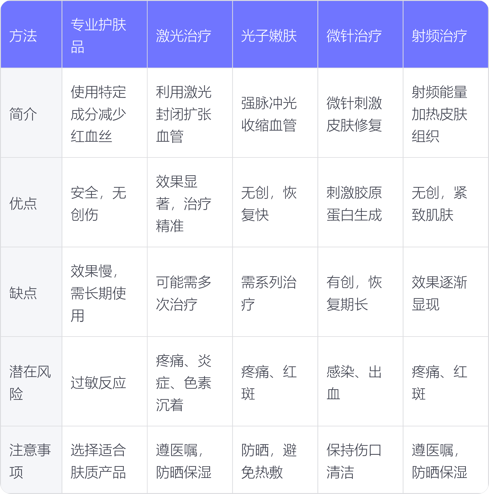 在进行任何医美治疗之前,建议咨询专业的皮肤科医生,并根据个人的皮肤状况选择合适的治疗方案。同时,治疗后的护理也非常重要,应遵循医生的建议,以促进愈合并减少复发的风险。此外,日常生活中应注意防晒,避免使用刺激性强的护肤品,以减少红血丝的发生。