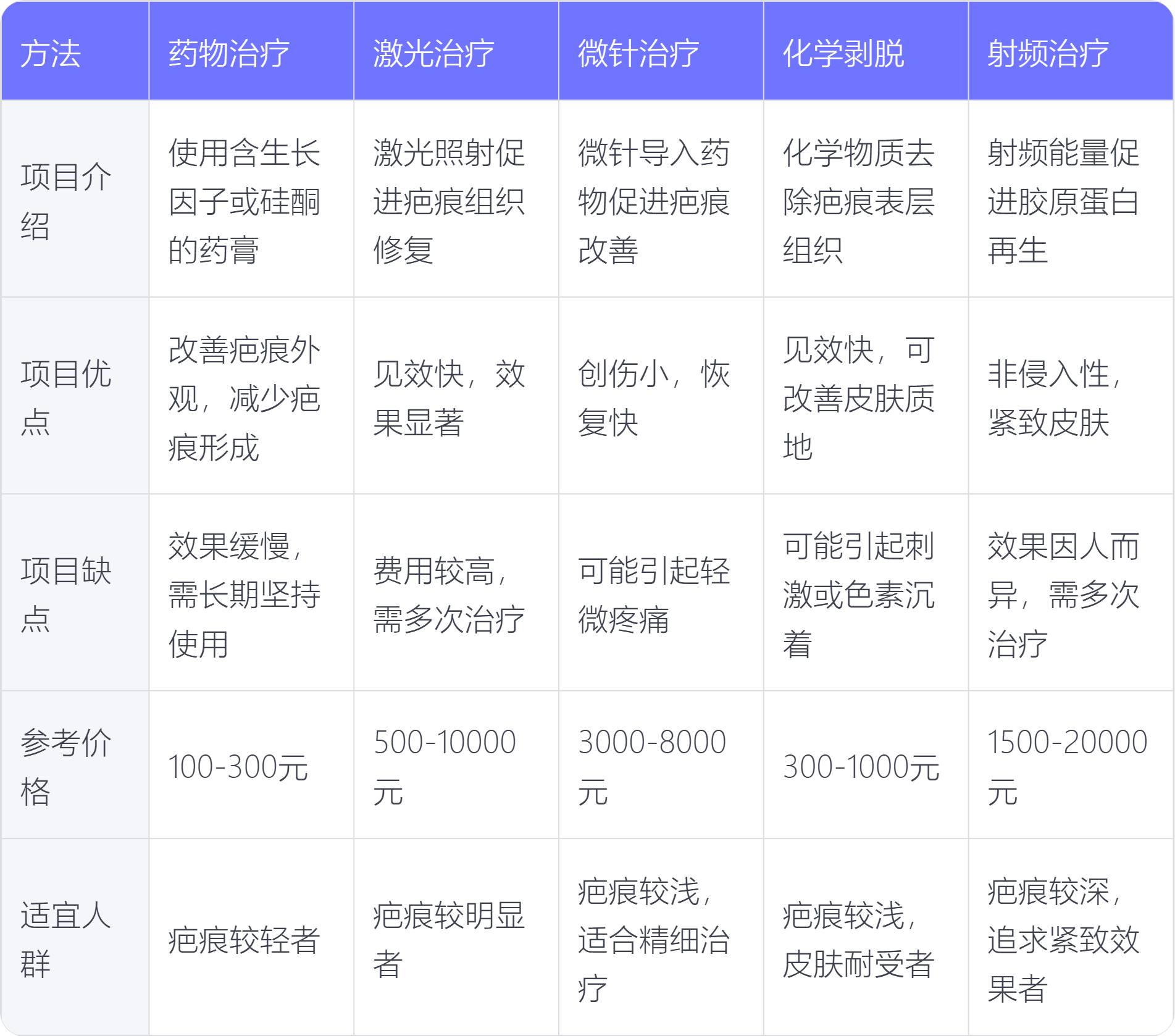 在选择修复方法时,应根据疤痕的具体情况和个人需求来决定。如果疤痕较严重或影响美观,建议咨询专业医生或整形外科医生的意见。无论采用哪种修复方法,都需要保持耐心和积极配合治疗。同时,注意保持饮食均衡、避免辛辣刺激性食物和烟酒等不良习惯,以促进皮肤恢复和疤痕修复。