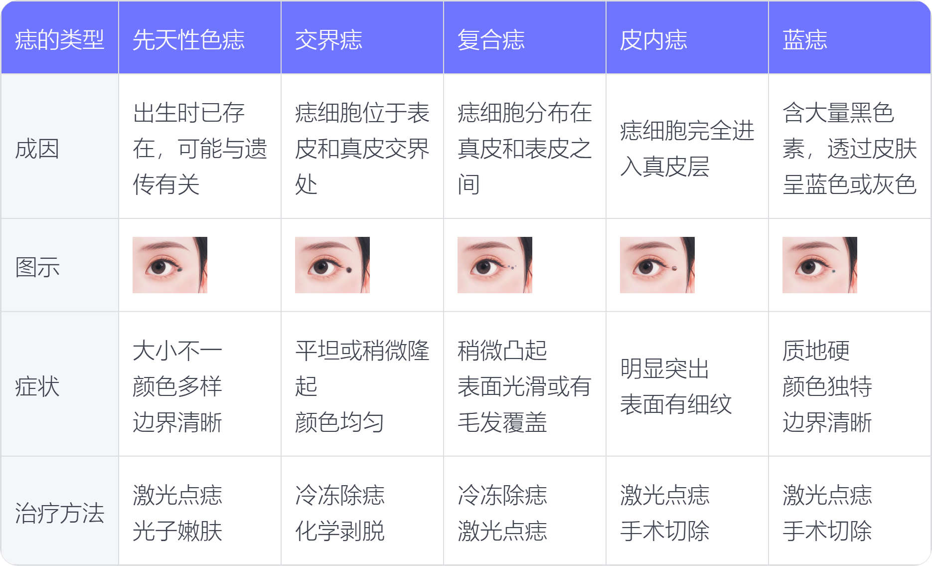 眼角痣的类型分型: