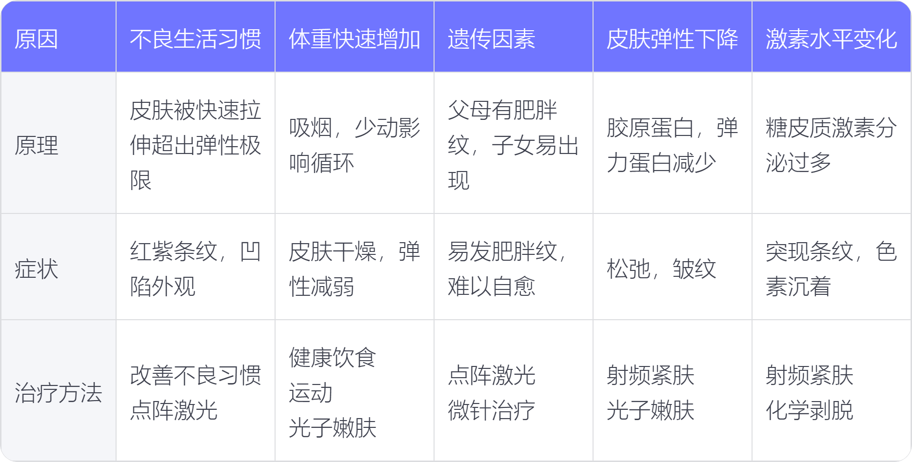 需要注意的是,肥胖纹的形成可能是多因素共同作用的结果,每个人的情况可能有所不同。因此,如有疑虑或症状持续加重,建议及时就医,以便医生根据个人情况给予针对性处理或治疗。