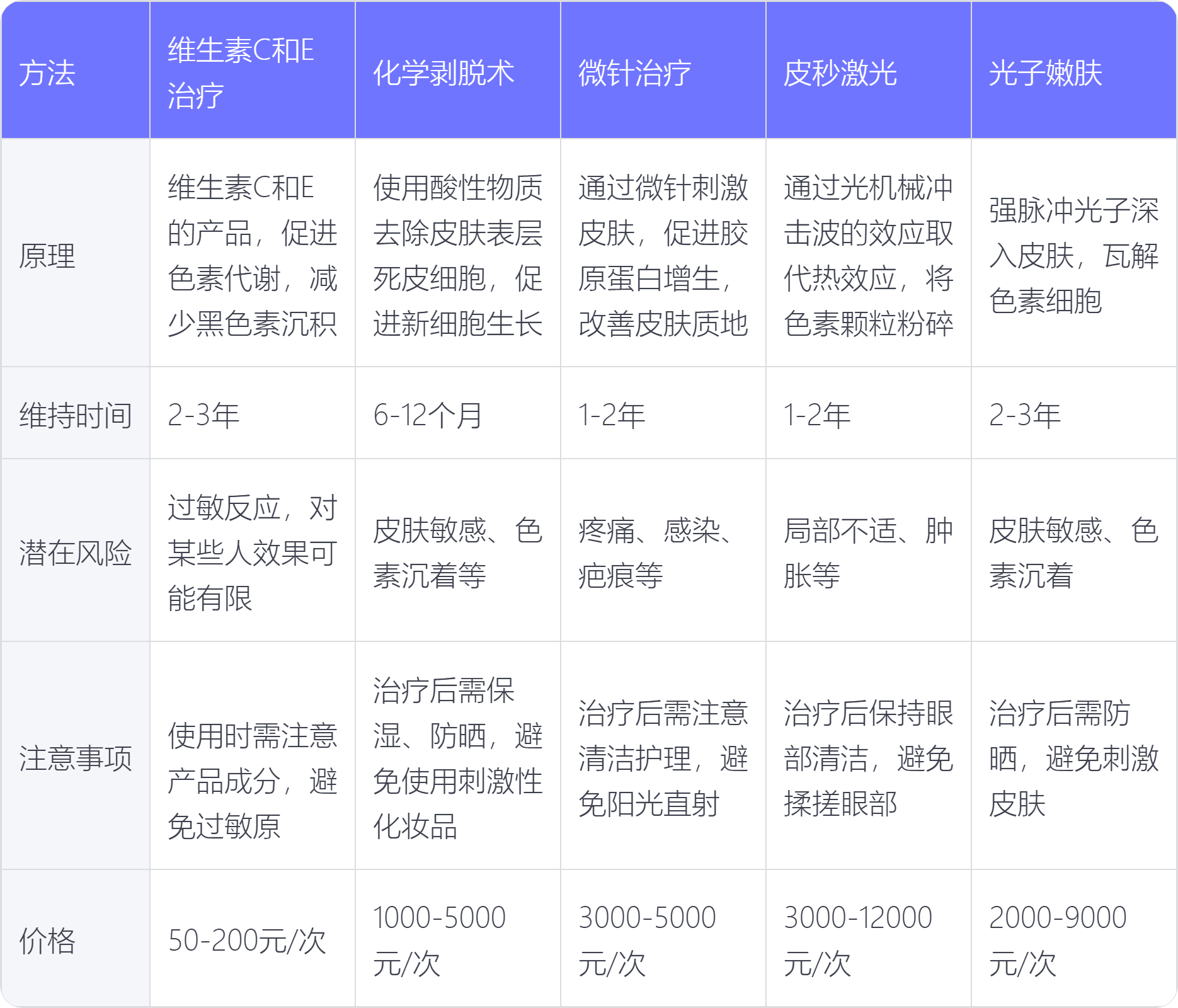 此外,这些方法的效果因个人皮肤状况和斑点程度而异,因此在选择治疗方法时,建议先咨询专业医生的意见。同时,预防斑点黑色素的形成也非常重要,平时要注意防晒、保持良好的作息和饮食习惯等。