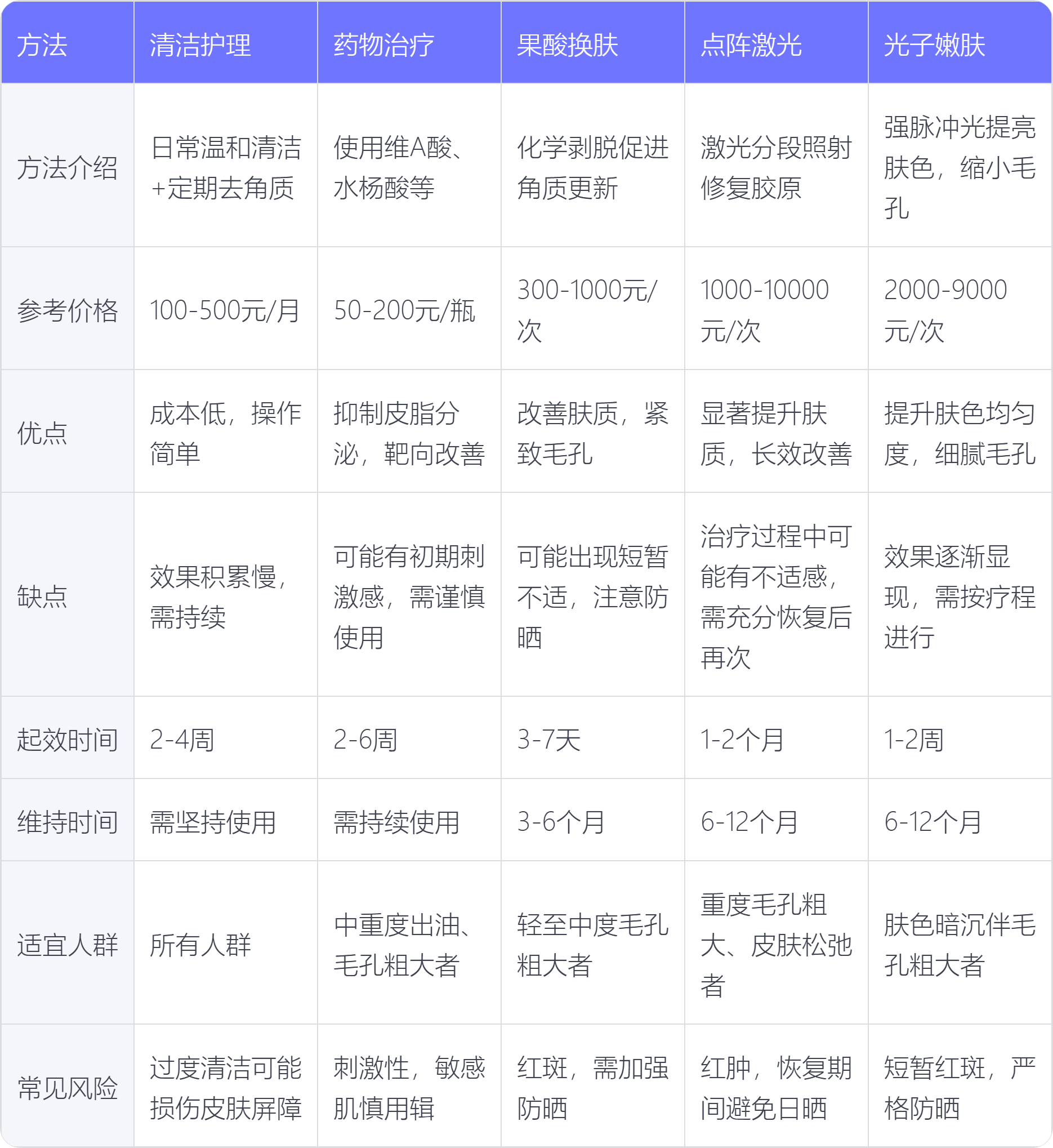 请注意,表格中的参考价格因地区、治疗次数、个体差异而有所不同。各种方法都有其优缺点,选择时需根据个人情况和医生建议进行。同时,任何医疗手段都存在风险,务必在专业医生的指导下进行,并详细了解可能存在的风险和注意事项。