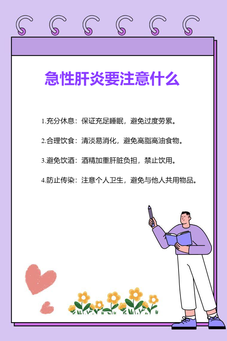 急性肝炎需要注意休息、合理饮食、避免饮酒、防止传染等。