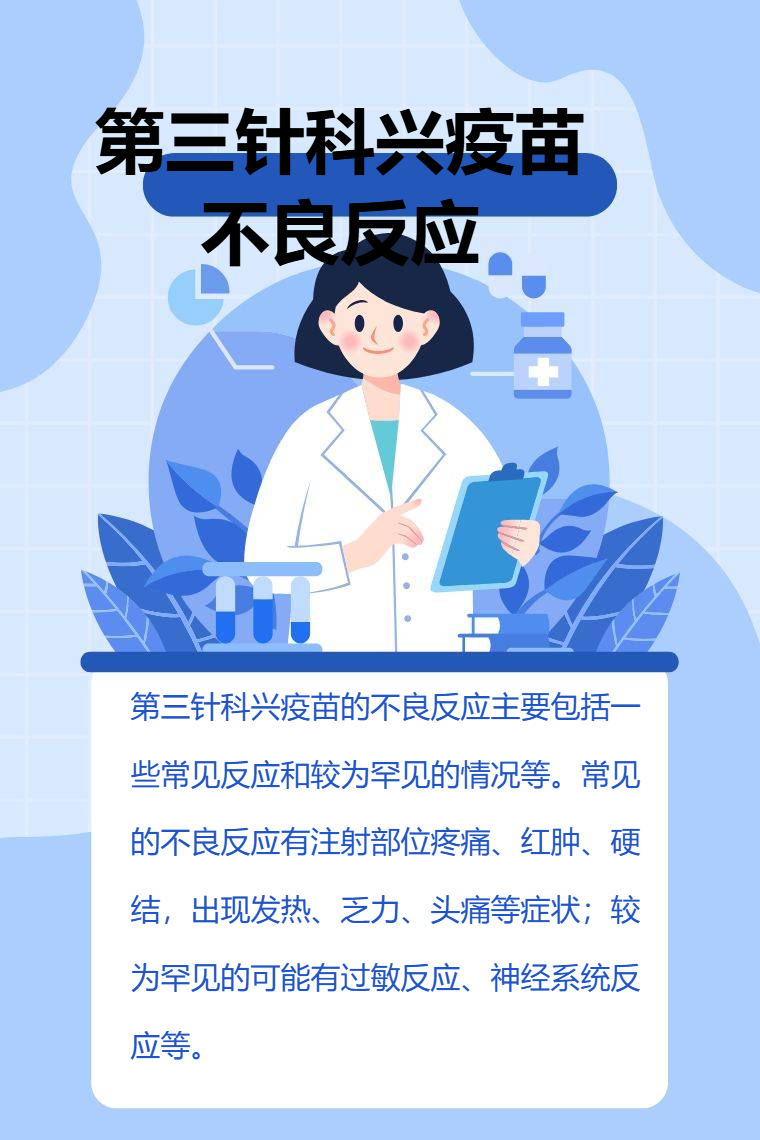 第三针科兴疫苗的不良反应主要包括一些常见反应和较为罕见的情况等。常见的不良反应有注射部位疼痛、红肿、硬结,出现发热、乏力、头痛等症状;较为罕见的可能有过敏反应、神经系统反应等。