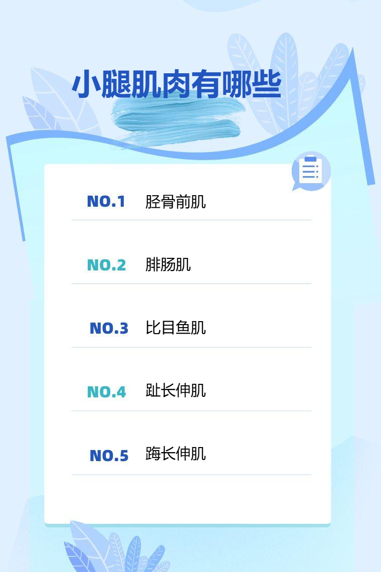 小腿肌肉主要包括胫骨前肌、腓肠肌、比目鱼肌、趾长伸肌、踇长伸肌等。