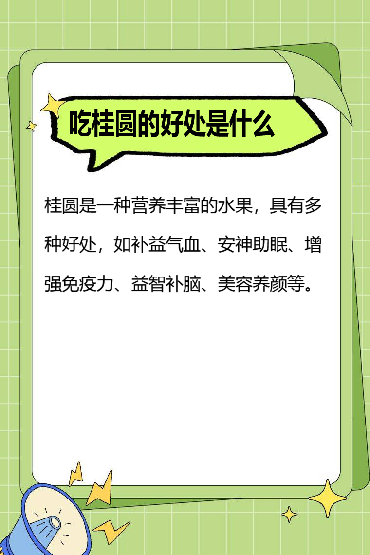 桂圆是一种营养丰富的水果,具有多种好处,如补益气血、安神助眠、增强免疫力、益智补脑、美容养颜等。