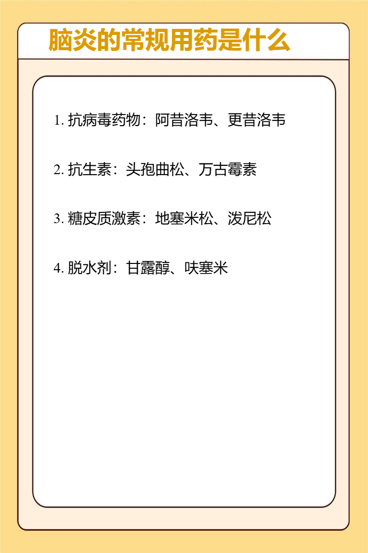 地塞米松:具有抗炎、减轻脑水肿的作用,可用于脑炎患者的对症治疗。