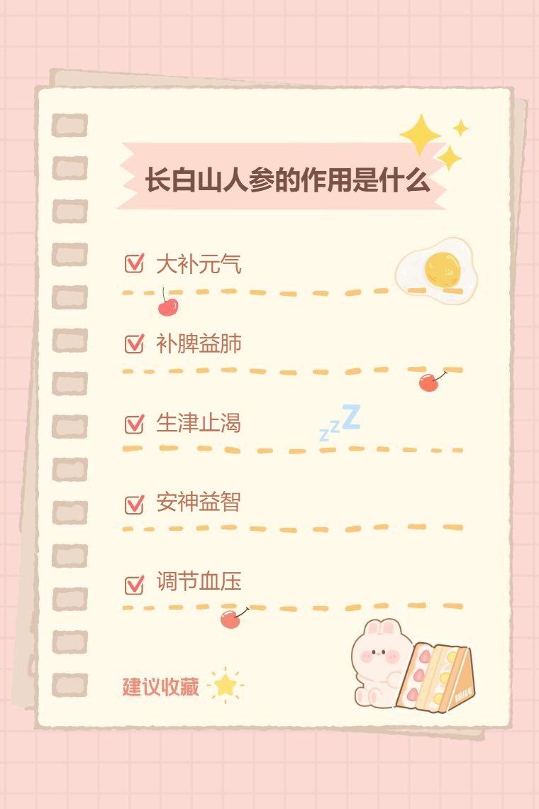 长白山人参具有多种作用,包括大补元气、补脾益肺、生津止渴、安神益智、调节血压等。