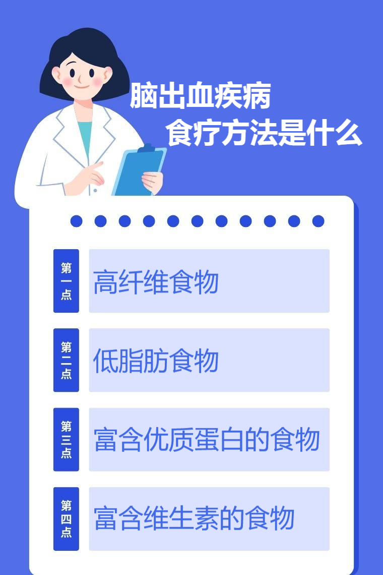 脑出血患者的饮食需要特别注意,以下是一些食疗方法,包括高纤维食物、低脂肪食物、富含优质蛋白的食物、富含维生素的食物等: