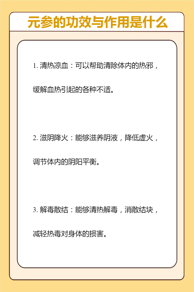 元参具有多种功效与作用,包括清热凉血、滋阴降火、解毒散结等。
