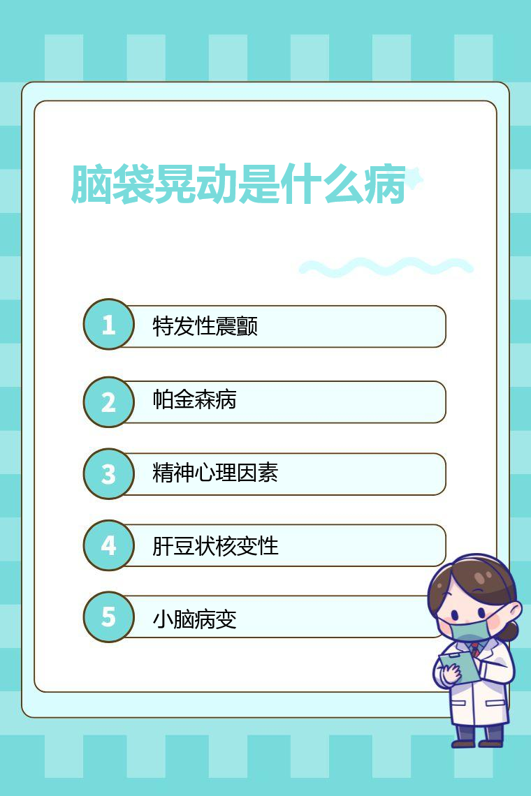 脑袋晃动可能是由多种原因引起的,常见的有特发性震颤、帕金森病、精神心理因素等,较为罕见的有肝豆状核变性、小脑病变等。