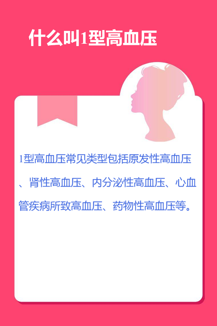 1型高血压常见类型包括原发性高血压、肾性高血压、内分泌性高血压、心血管疾病所致高血压、药物性高血压等。