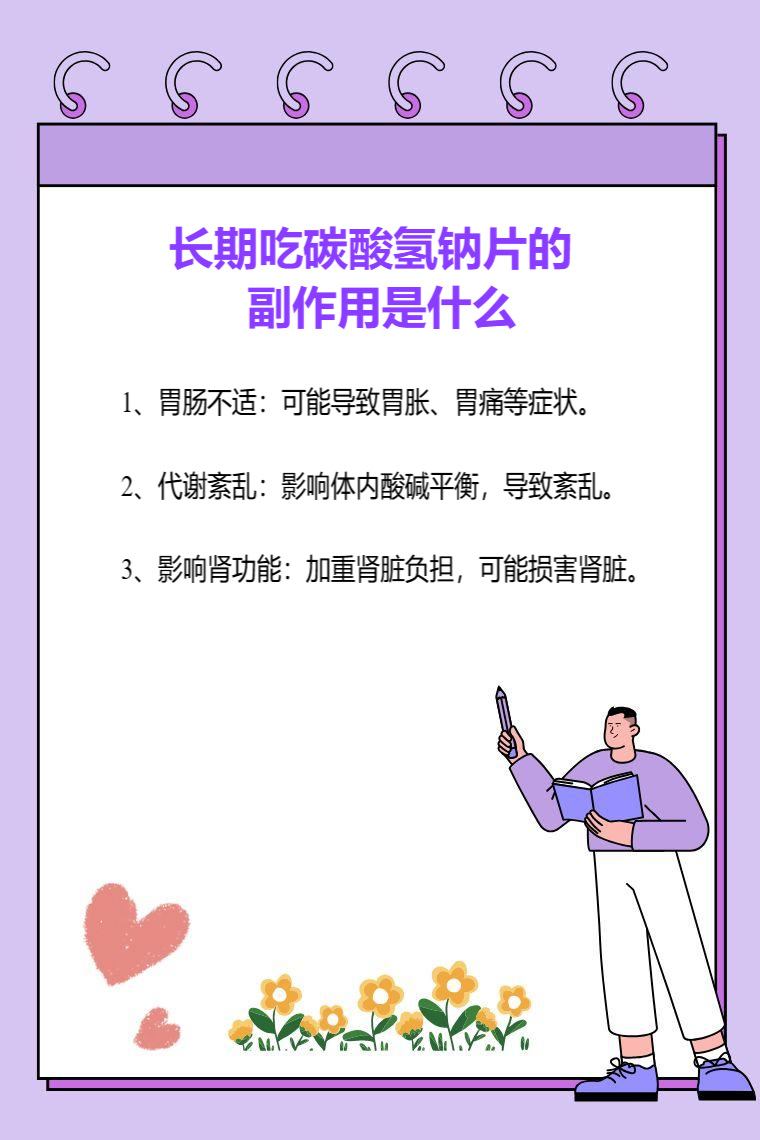 长期吃碳酸氢钠片可能会产生一些副作用,如胃肠不适、代谢紊乱、影响肾功能等。