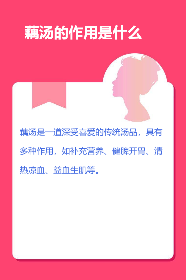 藕汤是一道深受喜爱的传统汤品,具有多种作用,如补充营养、健脾开胃、清热凉血、益血生肌等。