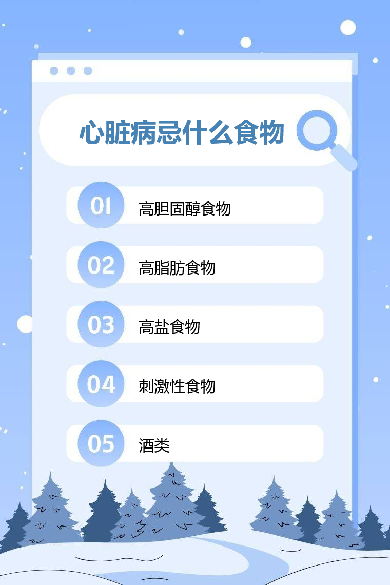 1. 高胆固醇食物:如动物内脏肝、肾、脑等、蛋黄等,这些食物中含有较高的胆固醇,过量摄入会导致血液中胆固醇水平升高,增加动脉粥样硬化的风险,进而加重心脏病病情。