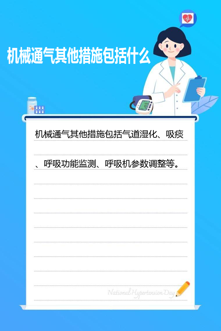 机械通气其他措施包括气道湿化、吸痰、呼吸功能监测、呼吸机参数调整等。