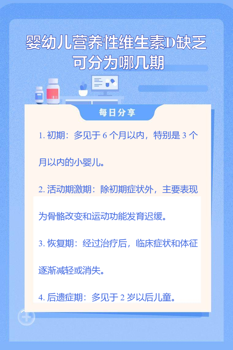 婴幼儿营养性维生素 D 缺乏可分为以下几期: