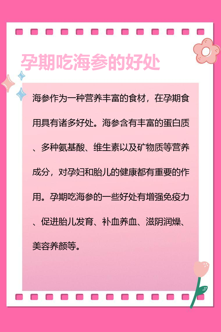 孕期适量食用海参对孕妇和胎儿的健康都有很多好处,但要注意适量食用,并在医生的指导下进行。