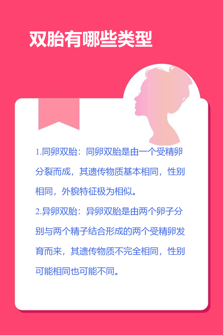 双胎主要有以下几种类型:同卵双胎、异卵双胎等。