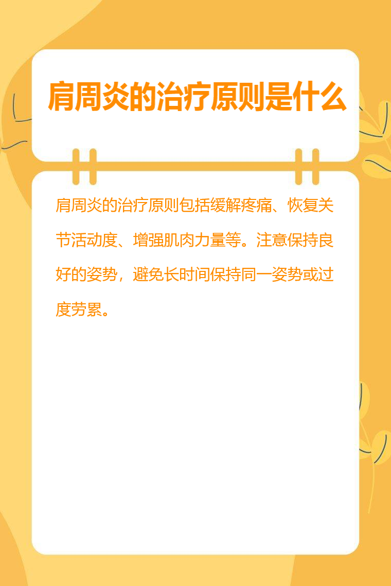 肩周炎的治疗原则包括缓解疼痛、恢复关节活动度、增强肌肉力量等。