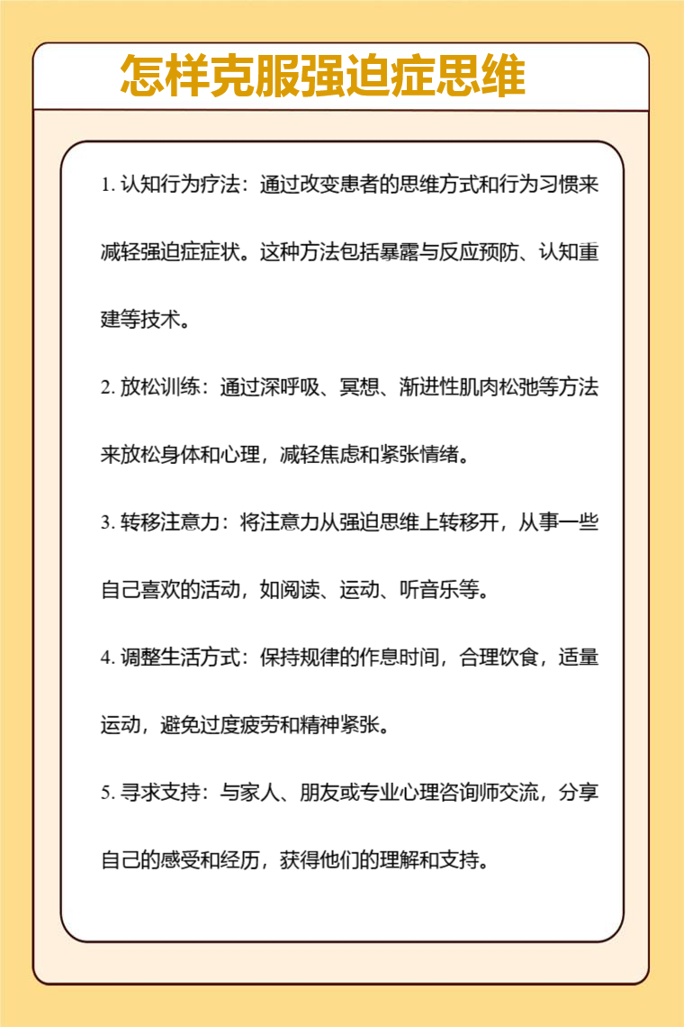强迫症思维是一种常见的心理问题,给患者的生活和工作带来了很大的困扰。以下是一些克服强迫症思维的方法: