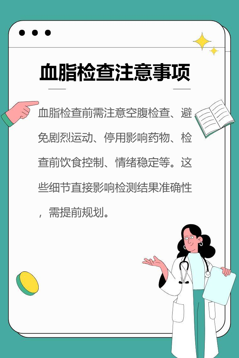 血脂检查前需注意空腹检查、避免剧烈运动、停用影响药物、检查前饮食控制、情绪稳定等。这些细节直接影响检测结果准确性,需提前规划。