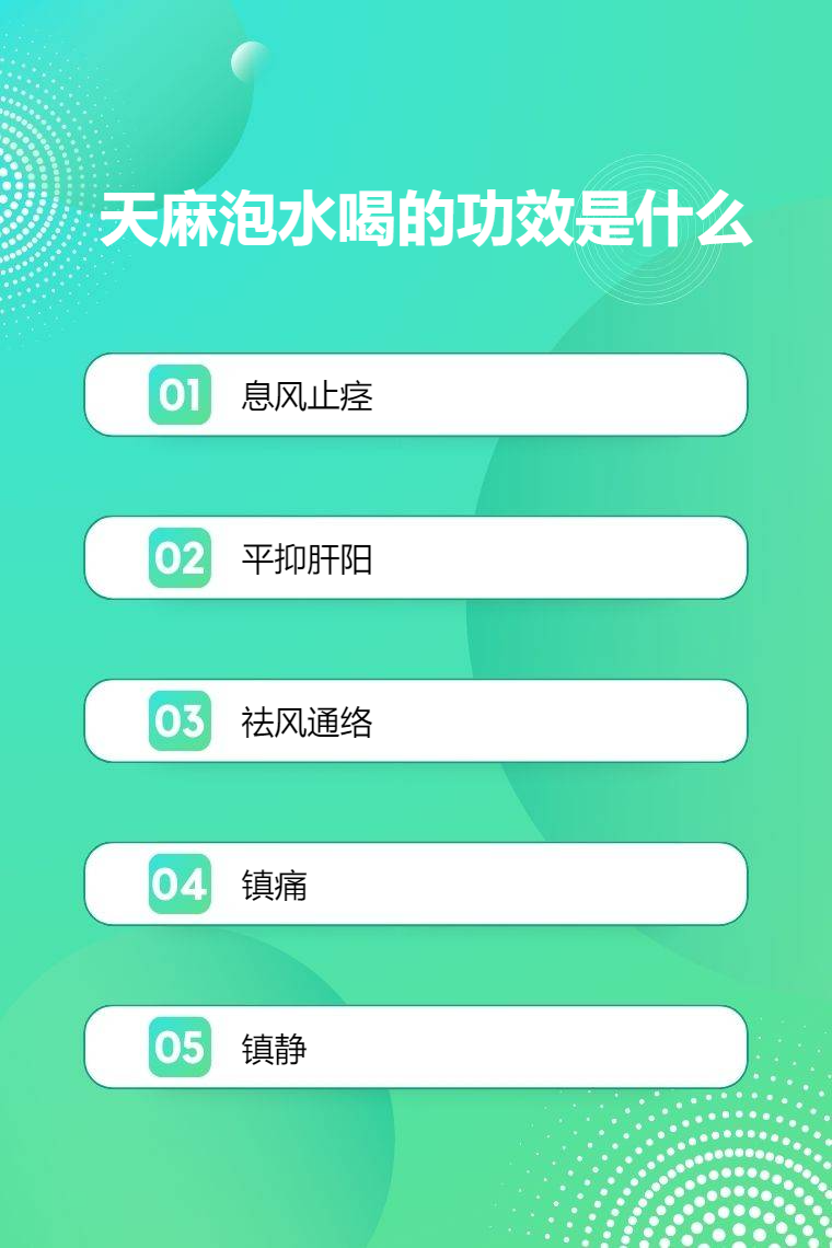 天麻是一种常见的中药材,将其泡水喝具有多种功效,如息风止痉、平抑肝阳、祛风通络、镇痛、镇静等。