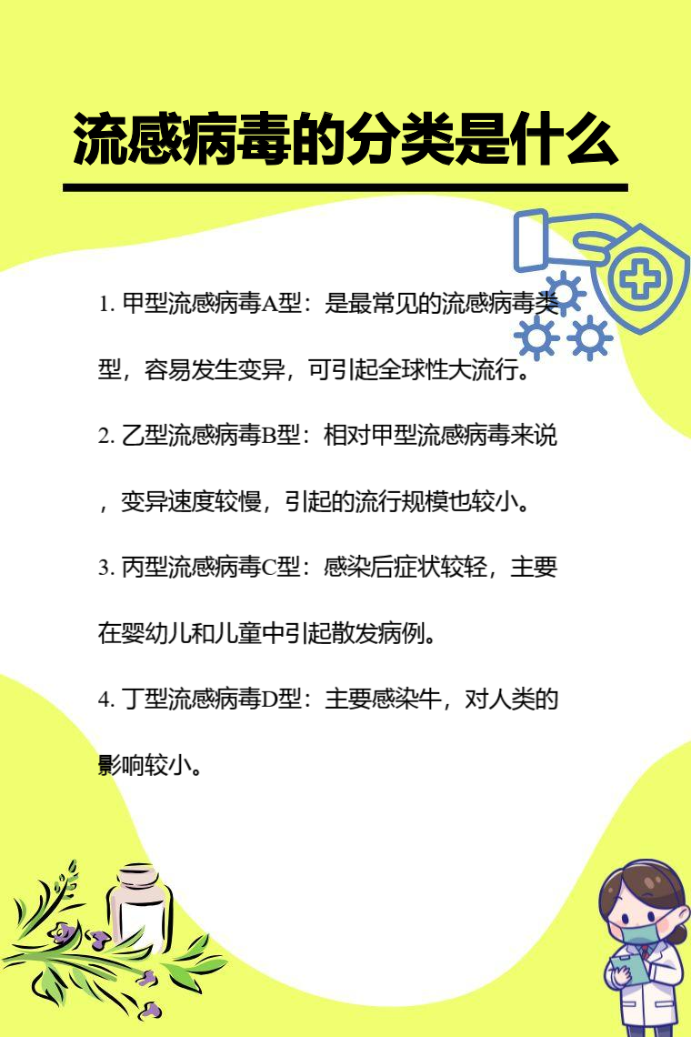 4. 丁型流感病毒D型:主要感染牛,对人类的影响较小。