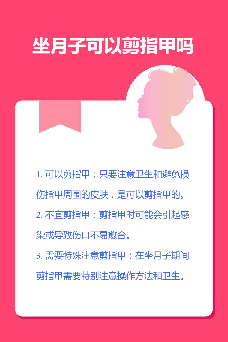2. 不宜剪指甲:有些观点认为坐月子期间不宜剪指甲,主要是担心剪指甲时可能会引起感染或导致伤口不易愈合。尤其是在产后身体较为虚弱的情况下,伤口的恢复可能会受到影响。