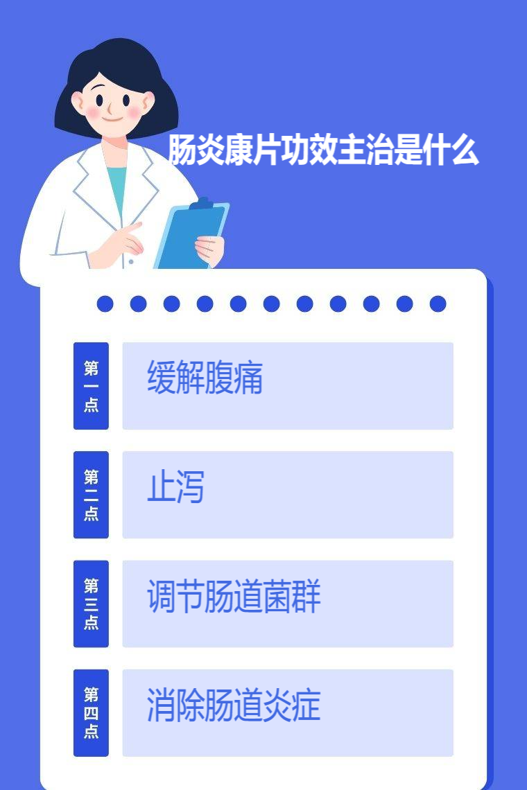 肠炎康片是一种常用于治疗肠道疾病的药物,其功效主治包括缓解腹痛、止泻、调节肠道菌群、消除肠道炎症等。
