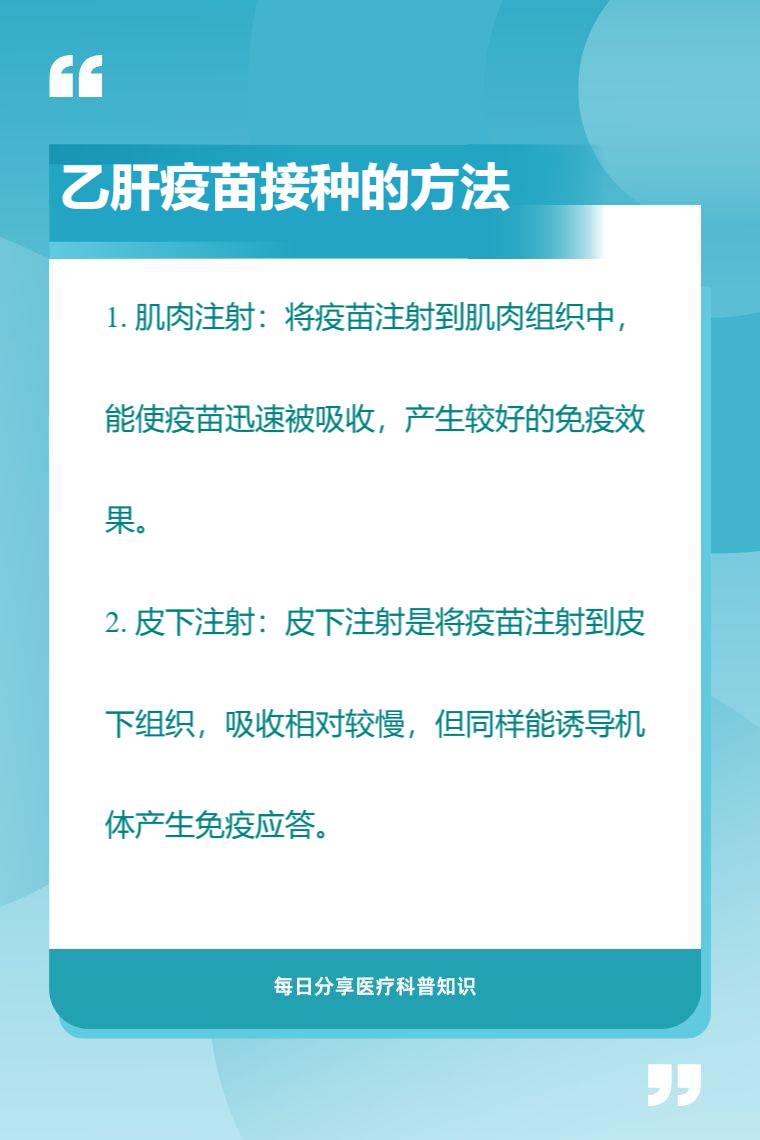 乙肝疫苗接种是预防乙肝病毒感染的重要措施,常见的接种方法有肌肉注射、皮下注射等。