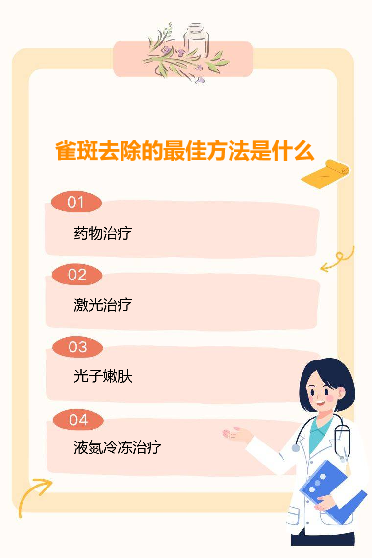 雀斑是一种常见的皮肤问题,去除雀斑的方法有多种,如药物治疗、激光治疗、光子嫩肤、液氮冷冻治疗等。