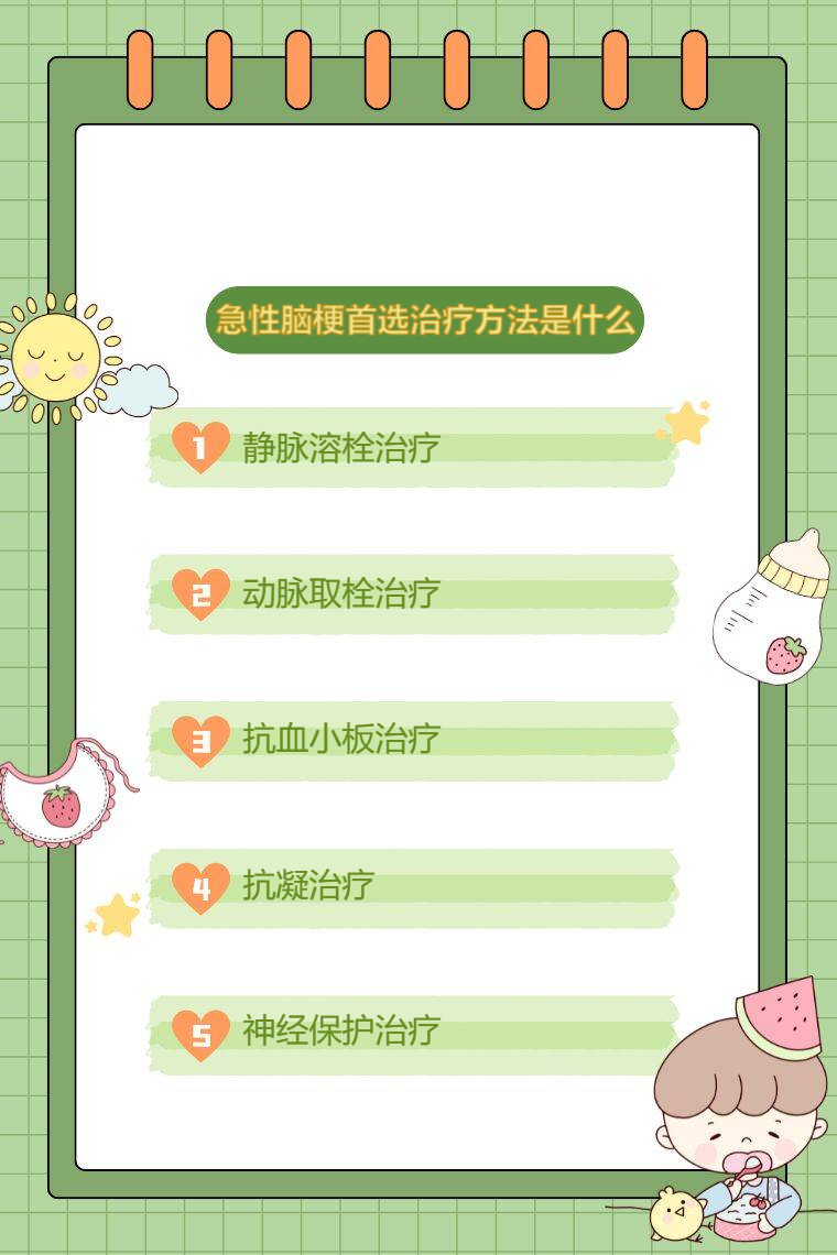 急性脑梗的治疗方法包括静脉溶栓治疗、动脉取栓治疗、抗血小板治疗、抗凝治疗、神经保护治疗等。