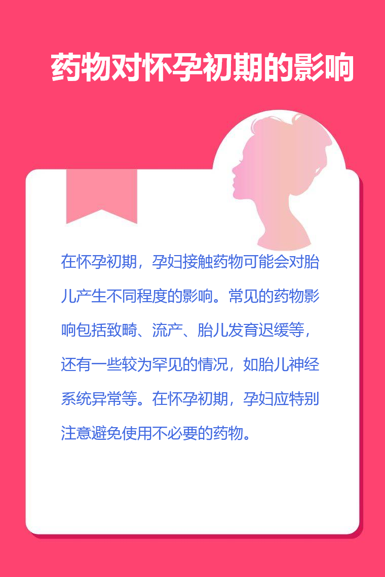 在怀孕初期,孕妇接触药物可能会对胎儿产生不同程度的影响。常见的药物影响包括致畸、流产、胎儿发育迟缓等,还有一些较为罕见的情况,如胎儿神经系统异常等。以下是一些常见药物及其对怀孕初期的影响: