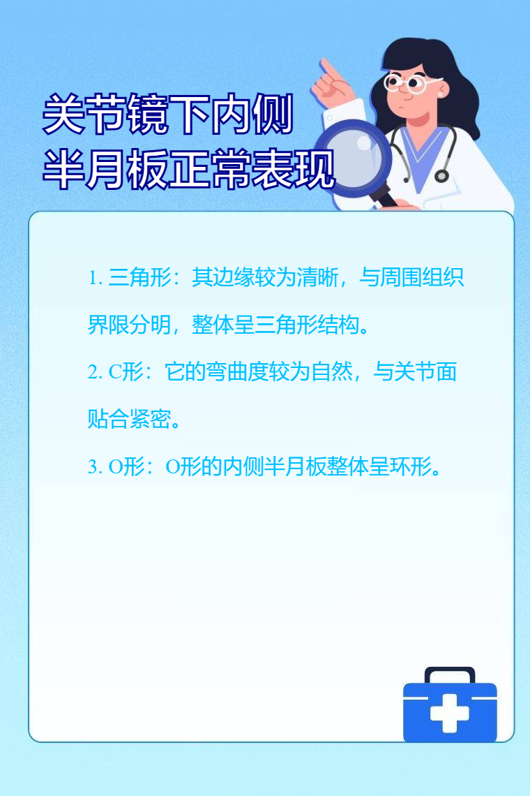 2. C形:C形的内侧半月板也是正常的表现之一。它的弯曲度较为自然,与关节面贴合紧密,有助于维持关节的正常运动轨迹,减少摩擦和损伤。