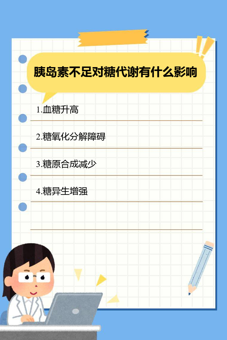 胰岛素不足对糖代谢的影响常见的有血糖升高、糖氧化分解障碍,较罕见的有糖原合成减少、糖异生增强等。