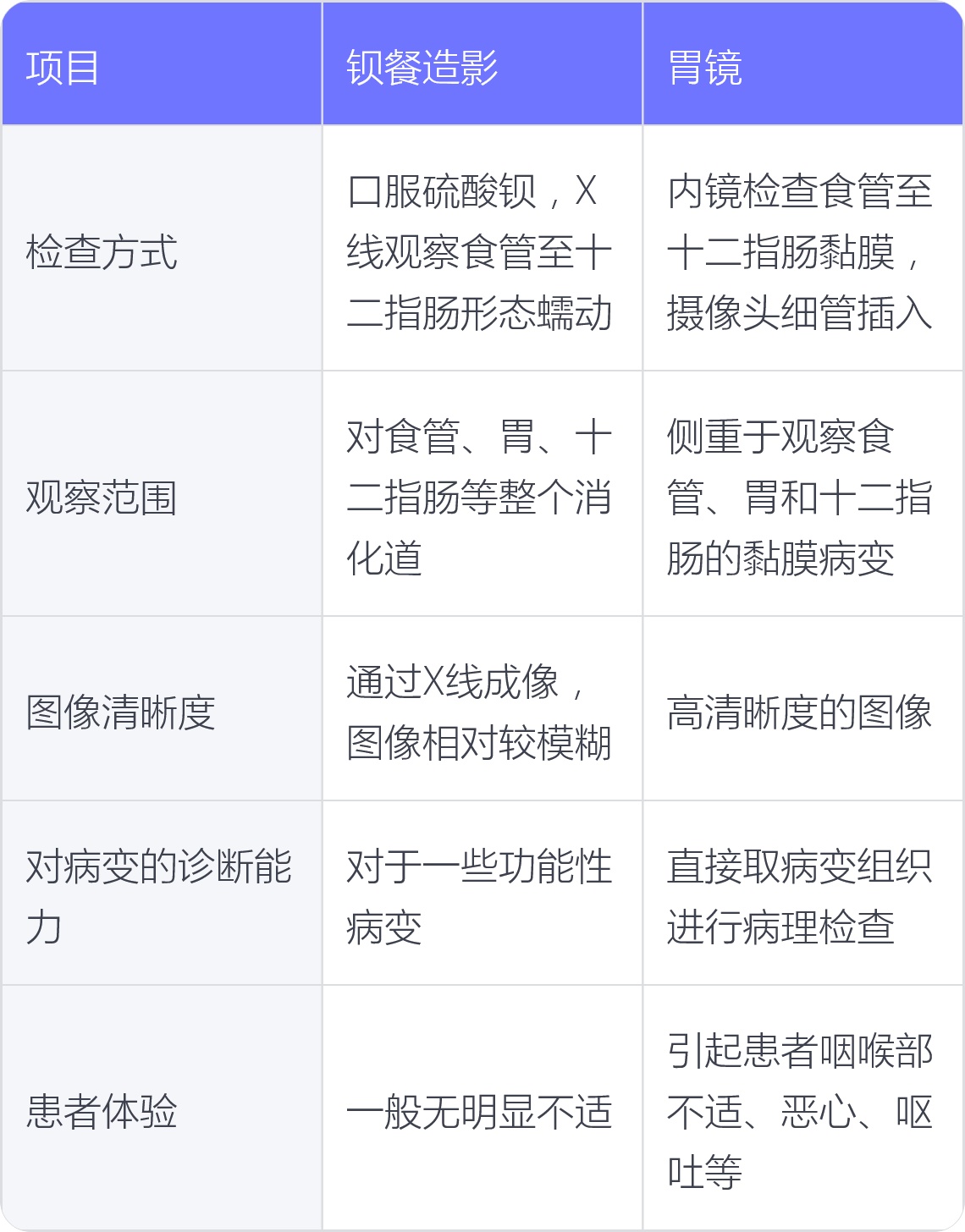 钡餐造影可以对食管、胃、十二指肠等整个消化道进行大致的观察,能发现一些较大的病变。胃镜主要侧重于观察食管、胃和十二指肠的黏膜病变,对于微小病变的发现更为敏感。