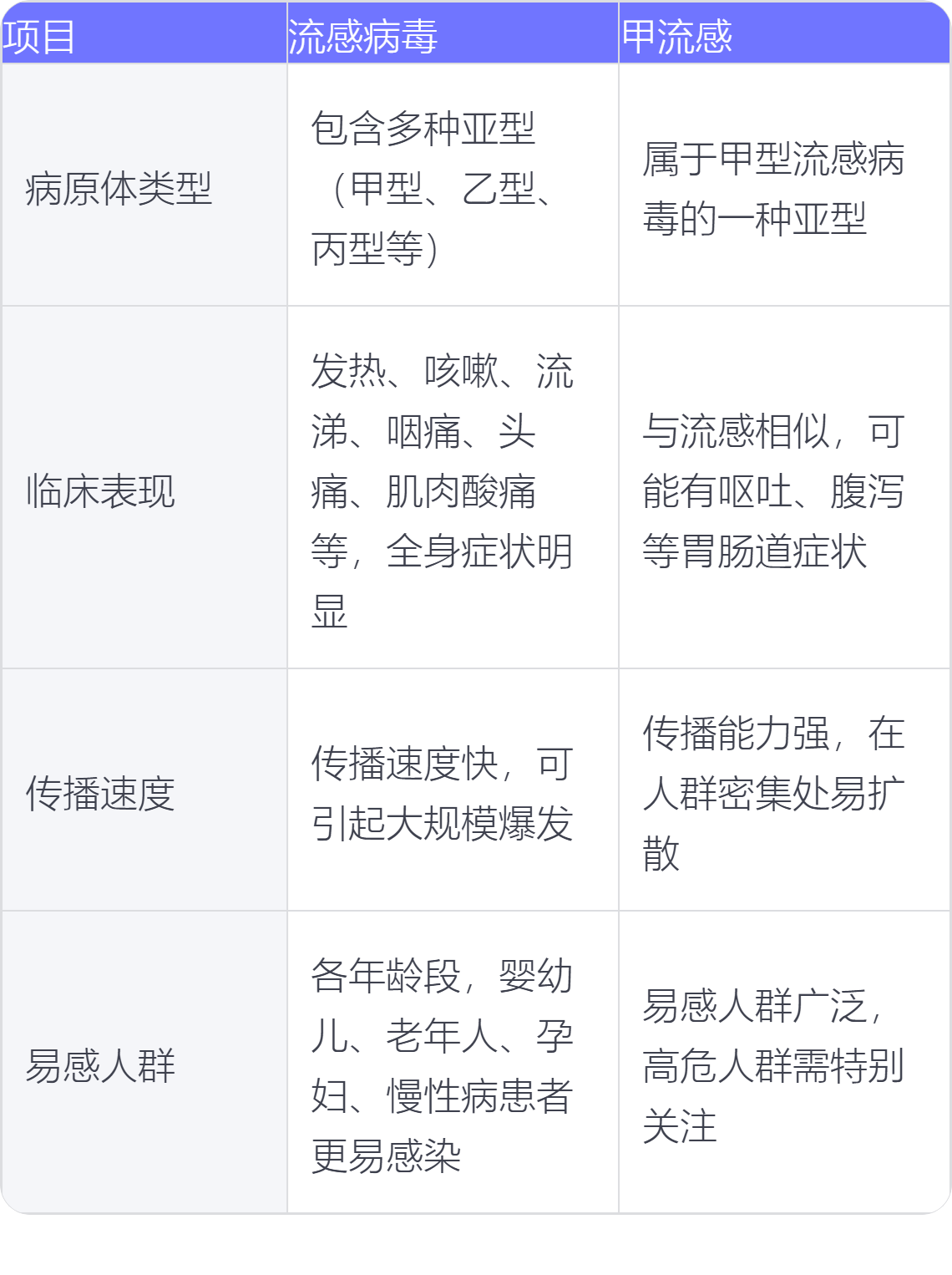 流感病毒和甲流感存在多方面的区别,如病原体类型、临床表现、传播速度、易感人群等。