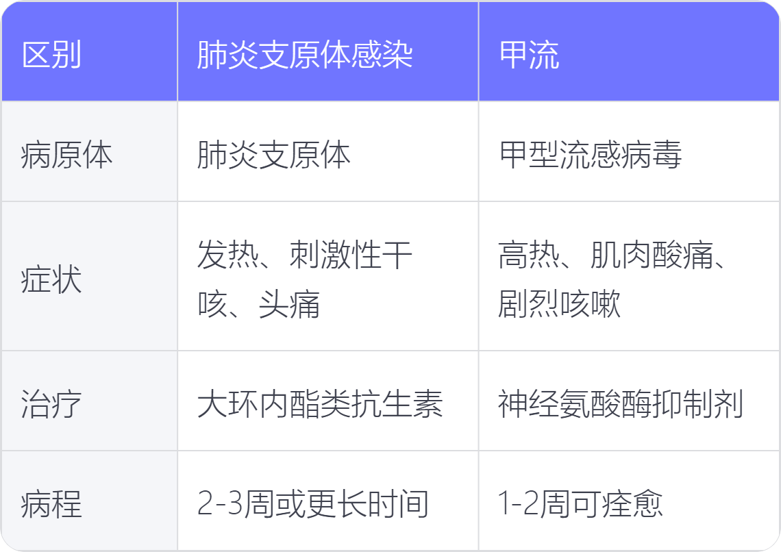 肺炎支原体感染和甲流在诸多方面存在差异,如病原体、症状、治疗、病程等。