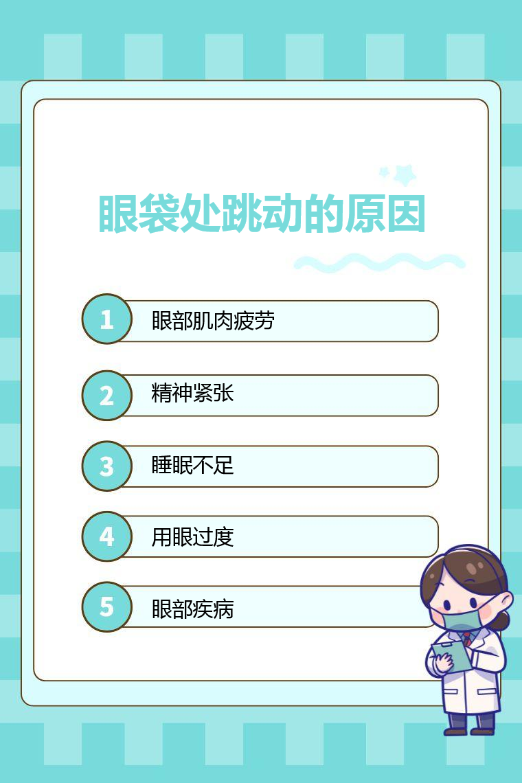 眼部肌肉疲劳、精神紧张、睡眠不足、用眼过度、眼部疾病等都可能导致眼袋处跳动。